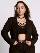 Styled with Raven Crop Blazer, our matching Raven Trousers, Flat Studded Belt, Dungeon master Skirt (sold separately)
