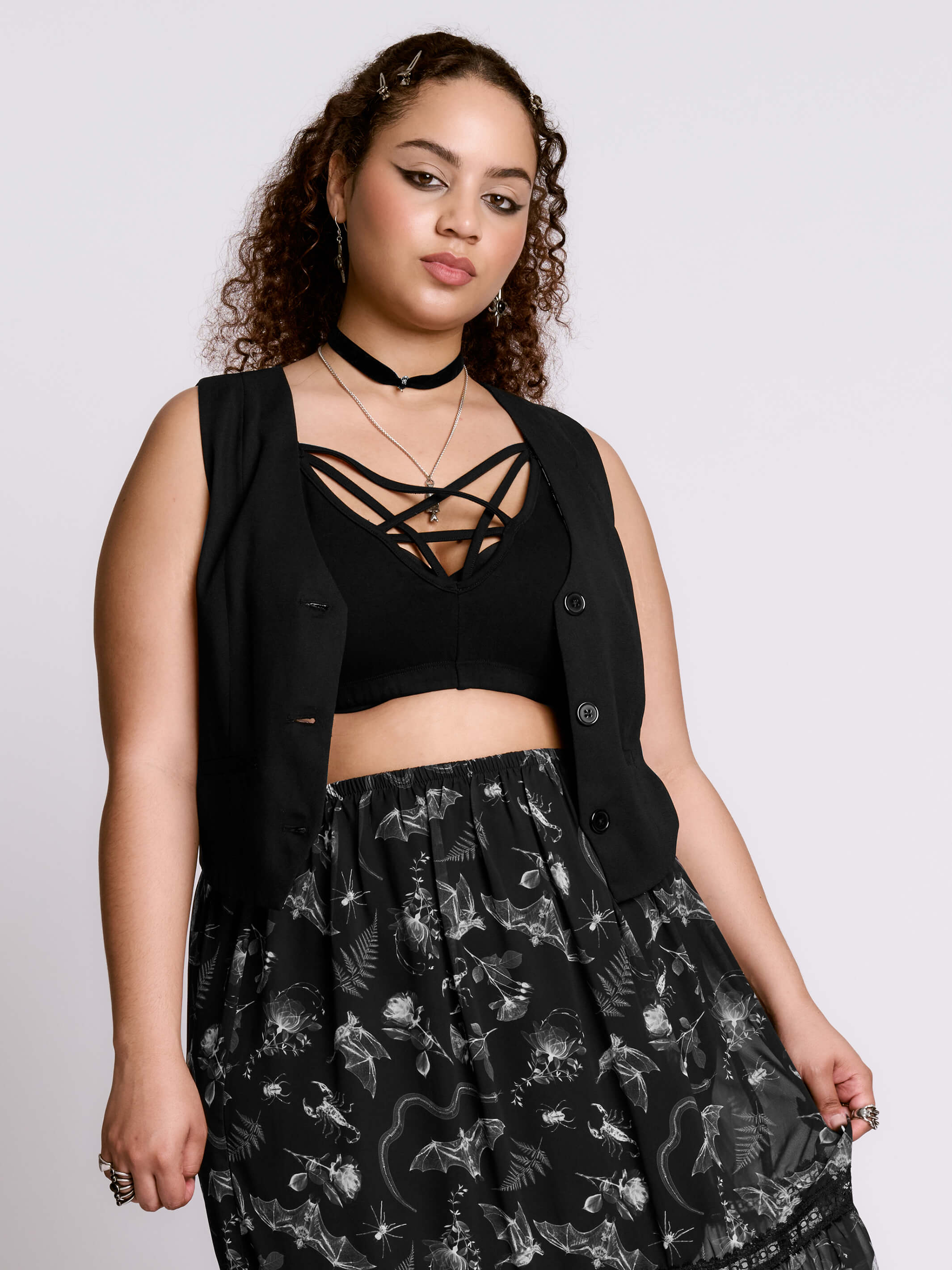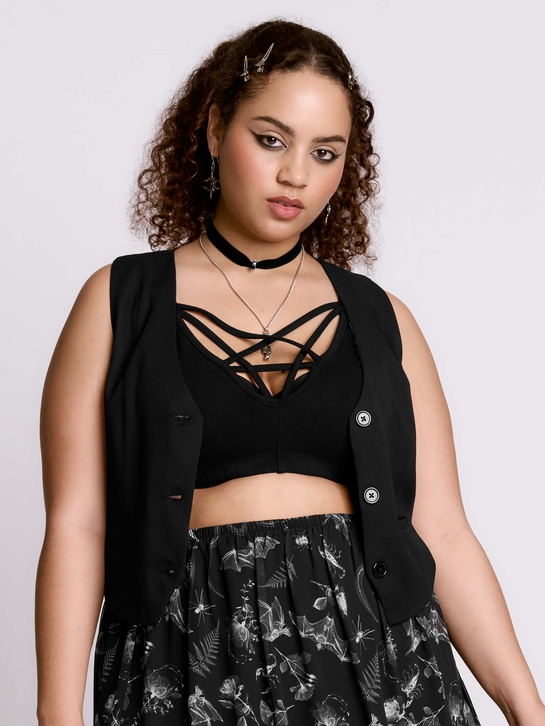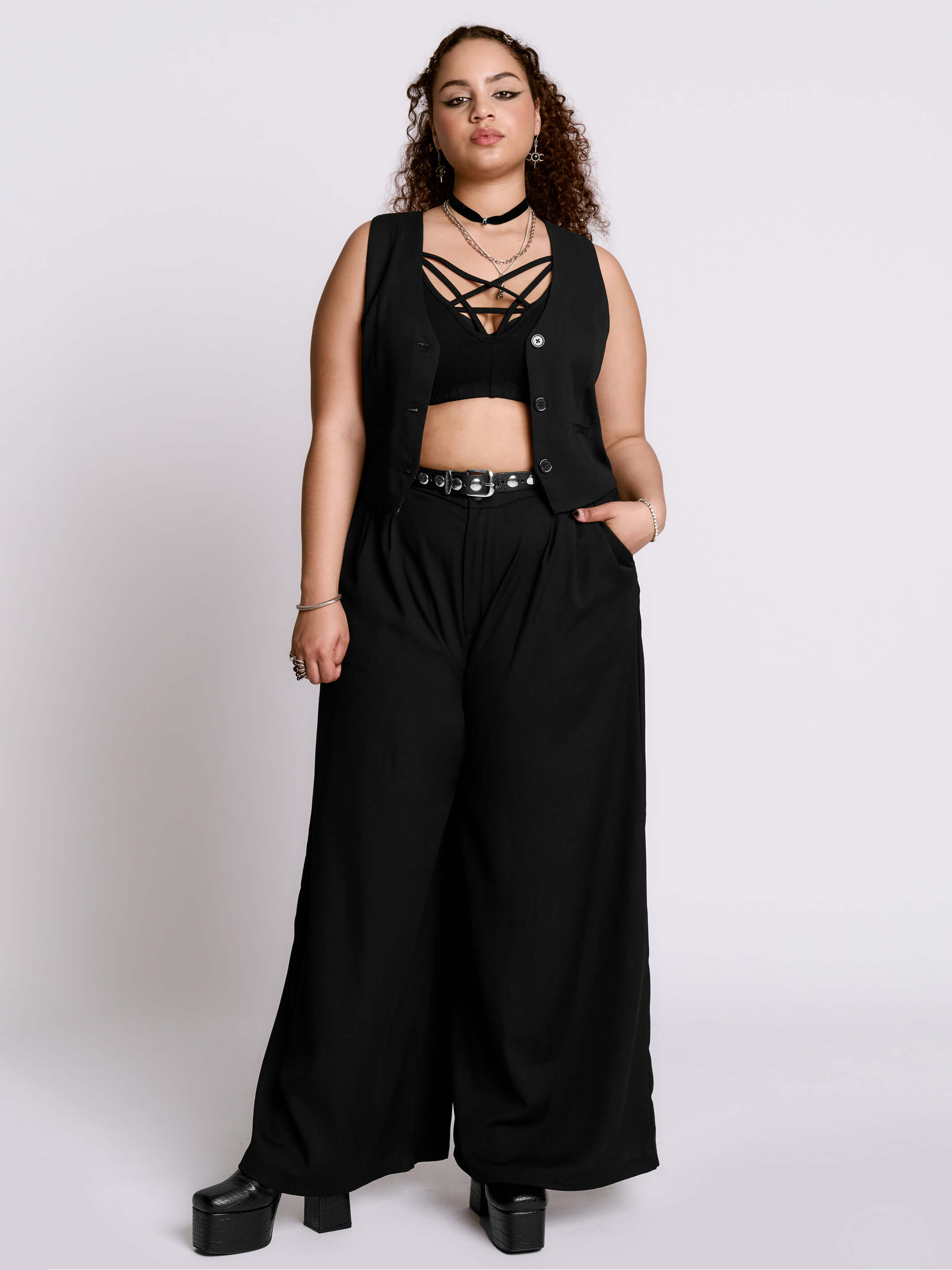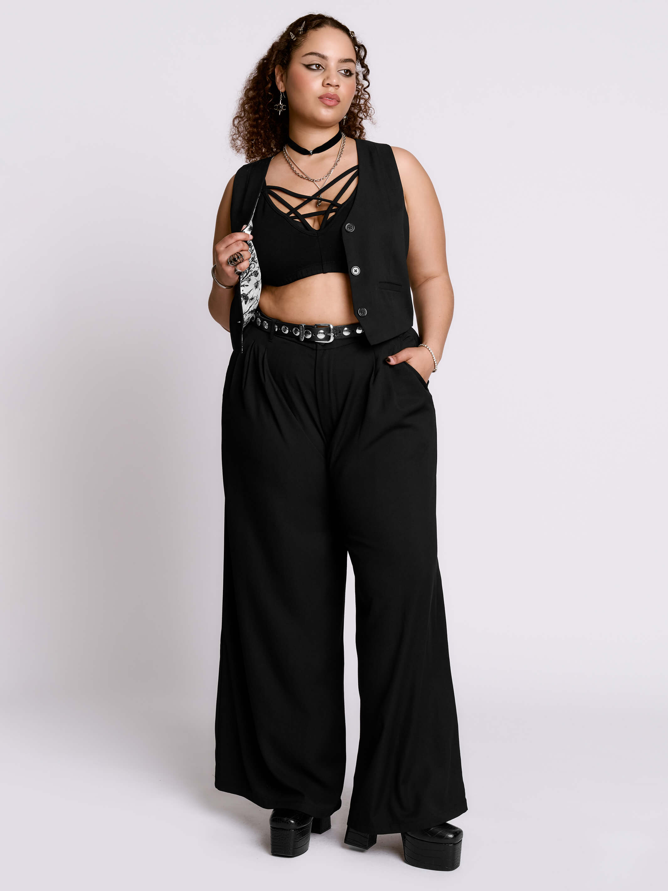 Styled with Coven Leader Bralette, Spellbound Boots and Wide Leg Corporate Trouser